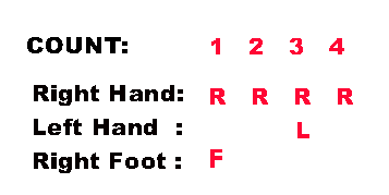 hand, then gradually add the right foot and left hand as you relax and feel the flow of the rhythm. It will get a little easier with each repetition. Practice makes perfect! Move on to the next lessons when you feel you are ready.